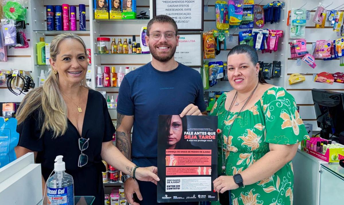 A iniciativa percorreu estabelecimentos do município, entre eles as farmácias São João, Tribarato, Agafarma e Unifarma, onde foram disponibilizados materiais da campanha "Fale antes que seja tarde", com orientações e informações sobre os canais de apoio para mulheres em situação de violência doméstica.