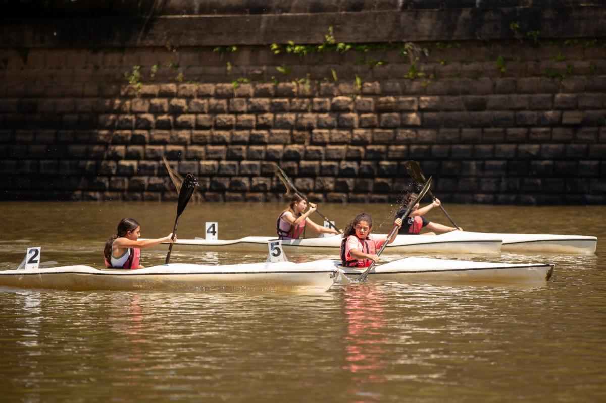 A canoagem movimentou os Jogos Escolares Municipais (JEM) nesta quinta-feira, 27 de novembro, com provas realizadas no Rio dos Sinos, na rua da Praia. A competição, organizada pela Secretaria Municipal de Educação (Smed), contou com a participação de 90 crianças e adolescentes da rede municipal de ensino, que realizaram 32 largadas de velocidade.